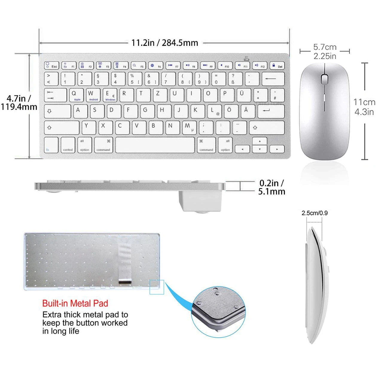 on ANDROID/WINDOWS devices "Settings"→"System"→"Languages and Inputs"→"KEYBOARD (Physical Keyboard)"→"Physical Keyboard (PHYSICAL KEYBOARD)"→"Select Keyboard Layout (SET UP KEYBOARD LOYOUTS)"→"German Android Keyboard"→"Select Keyboard Layout (German Android Keyboard)"