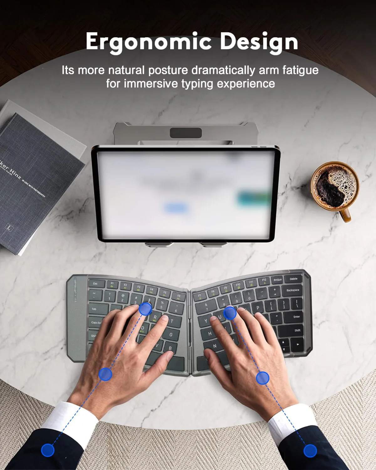 Description : Ergonomic Split FoldableKeyboard Recommended Uses For Product : Business, Education, Everyday Use, Personal, Student, Travel