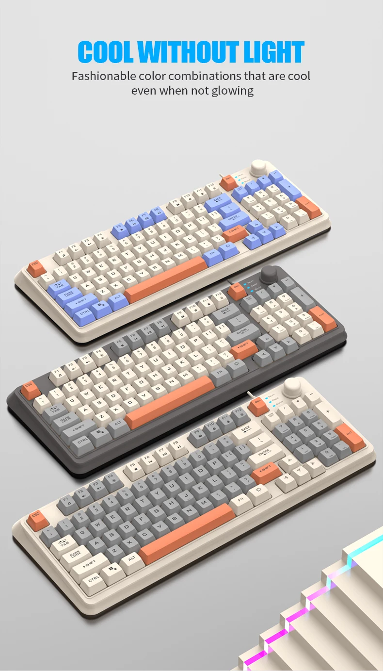 Illuminate your typing with the XUNFOX K82's multicolor backlight, enhancing both style and visibility in any setting.